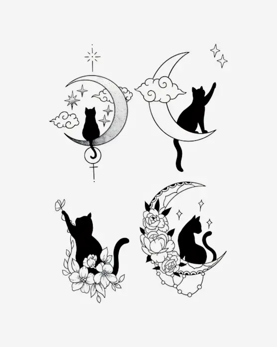 Celestial Felines – Semi-Permanent Tattoos